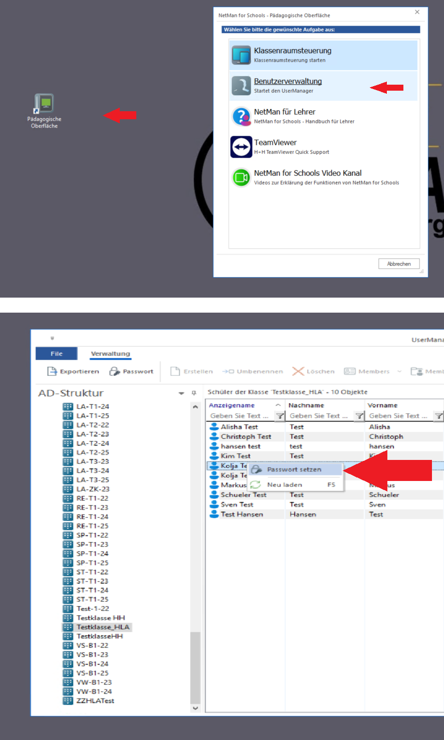 An allen PCs der HLA könnt ihr das Kennwort eurer Schüler selbst zurücksetzen.