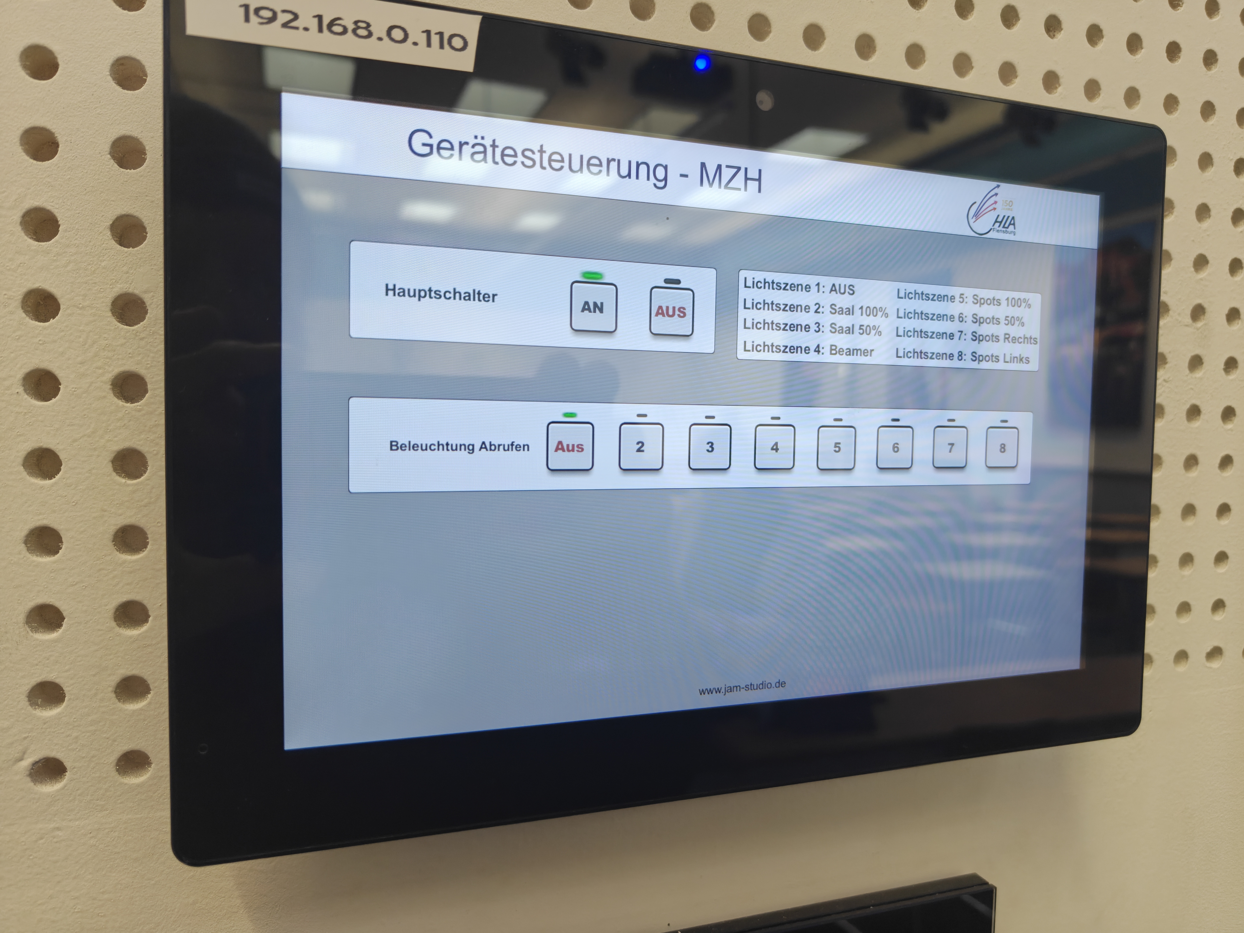 Das Panel in der MZH bietet unterschiedliche Seiten zur Bedienung der Halle.