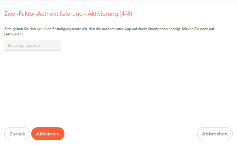 7. Im letzten Schritt werden Sie aufgefordert einen Bestätigungscode einzutippen, der die Einrichtung des 2. Faktors abschließt